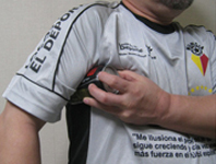 1.肩先の箇所を親指と人差し指の先端部で軽くつまみます。